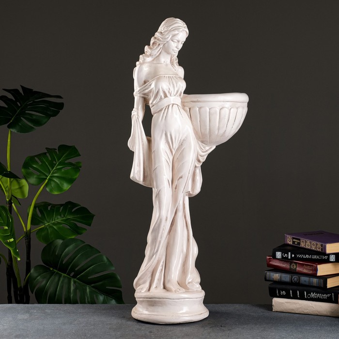 Фигура - кашпо для цветов «Девушка в платье», 1.2 л, 84×23×35 см, гипс, бежевое