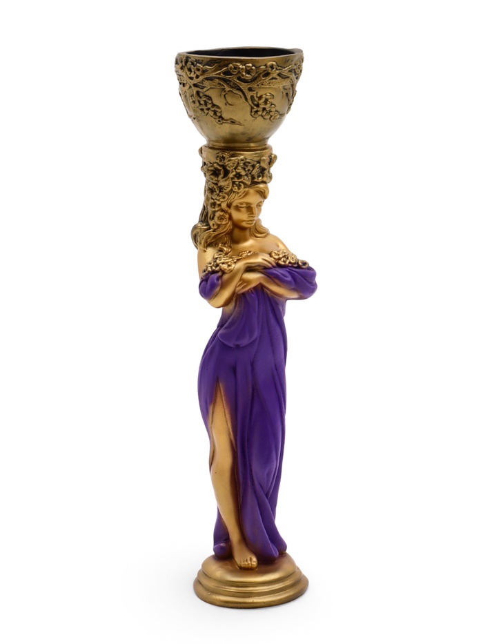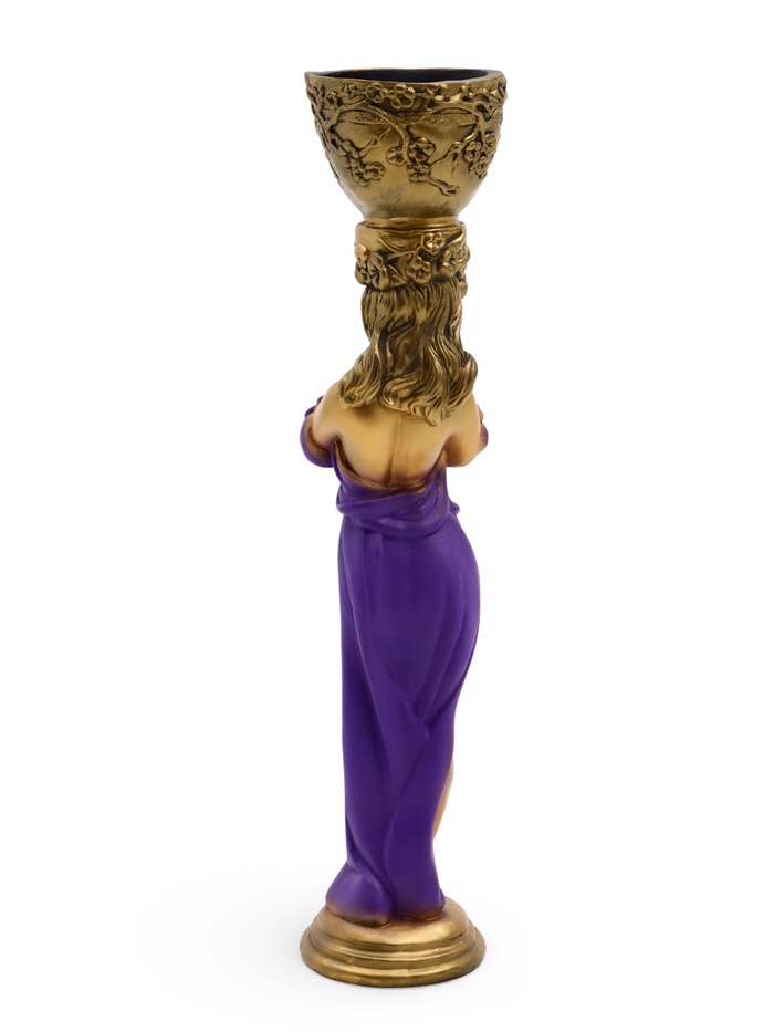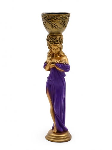 Фигура с кашпо «Девушка с цветами», 23×25×104 см, гипс, цвет бронзовый, фиолетовый