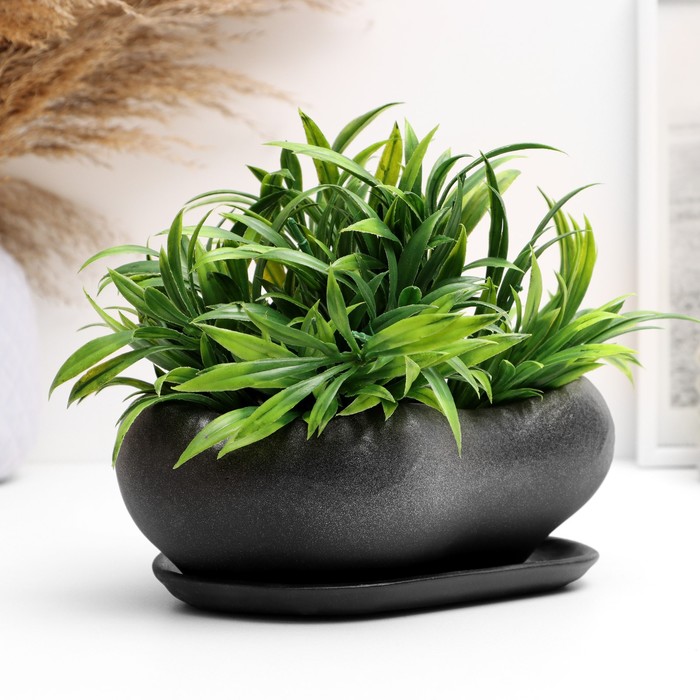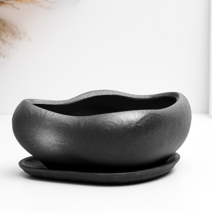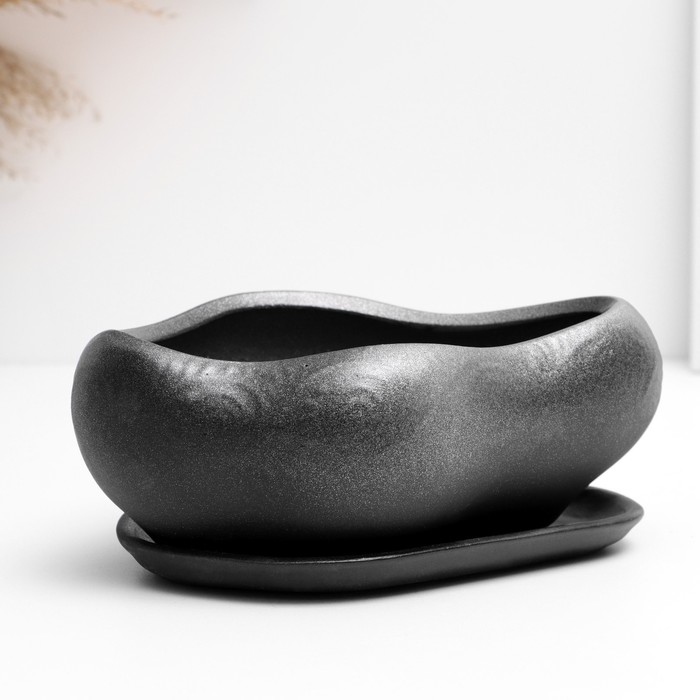 Горшок для кактусов и суккулентов «Бонсай», 600 мл, 17×14×7 см, керамический, с поддоном, серый