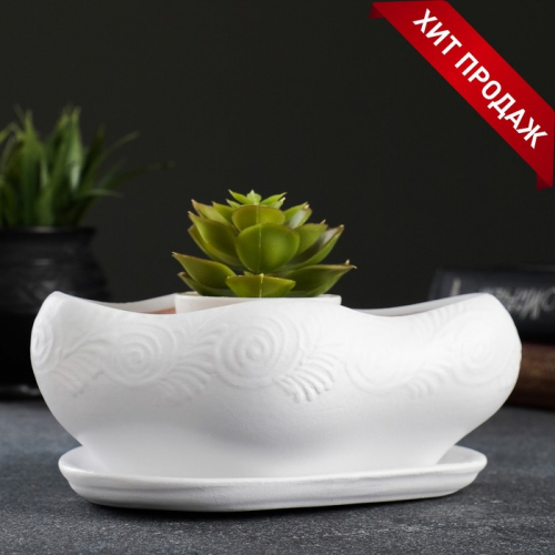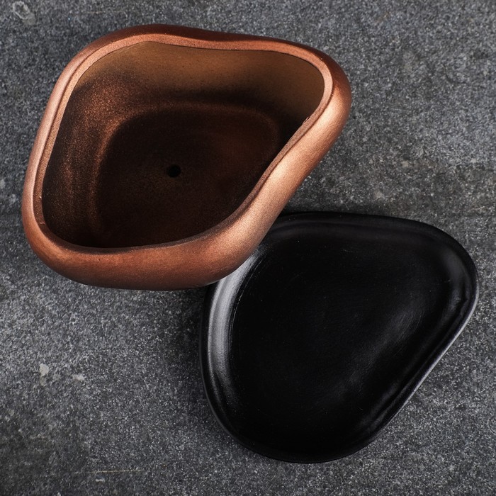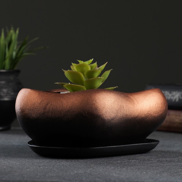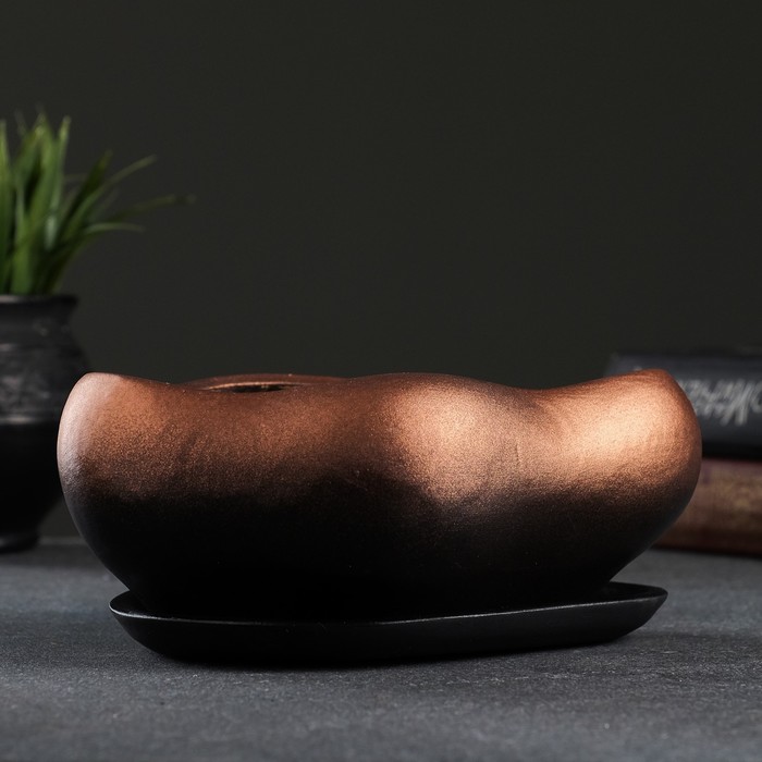 Горшок для кактусов и суккулентов «Бонсай», 600 мл, 17×14×8 см, керамический, с поддоном, цвет бронзовый