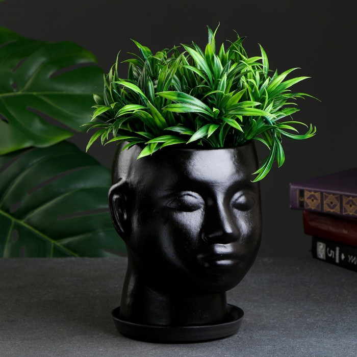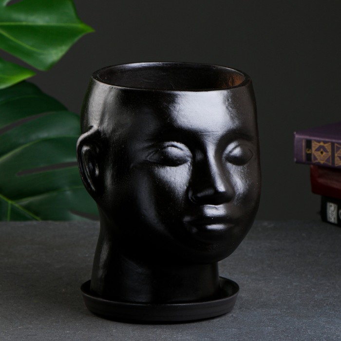 Горшок-органайзер «Голова», керамика, чёрное, 3 л, 24×19 см