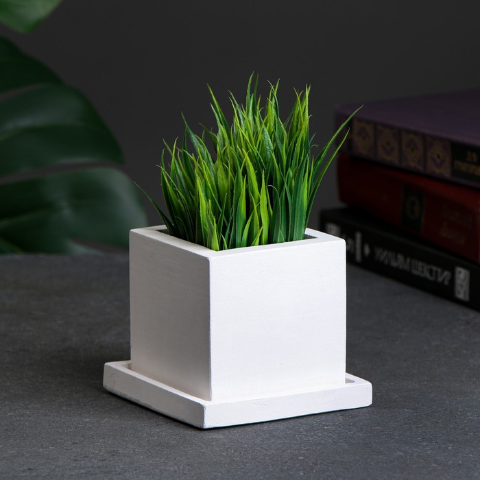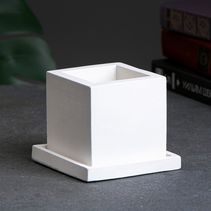 Кашпо для цветов «Куб с поддоном», 250 мл, 8×6×6 см, гипс, белое