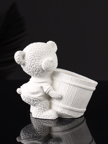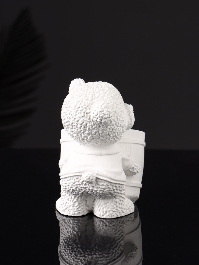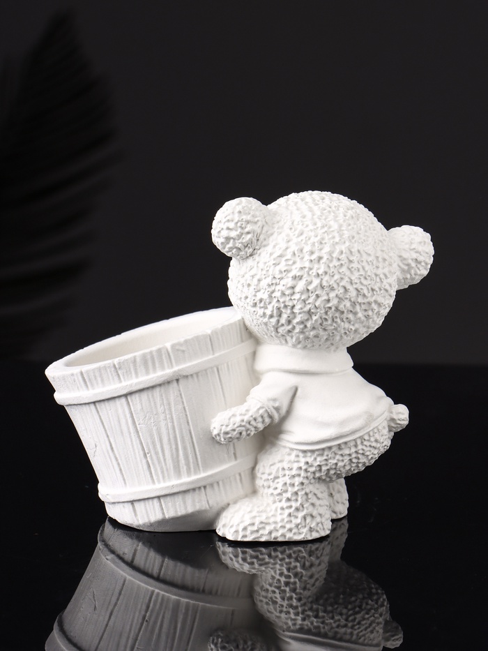 Кашпо гипс «Медведь с горшочком», 9×10×6 см, белый