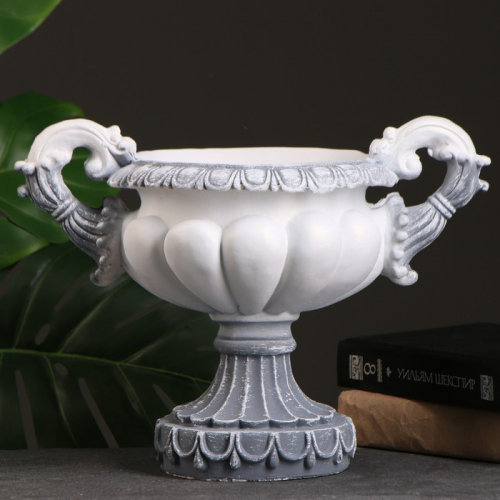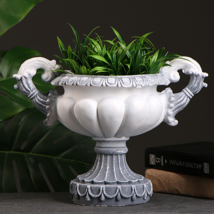 * Сдержанный серый цвет: глубокий холодный оттенок подчёркивает сложность рельефа и придаёт вазону архитектурный вид.