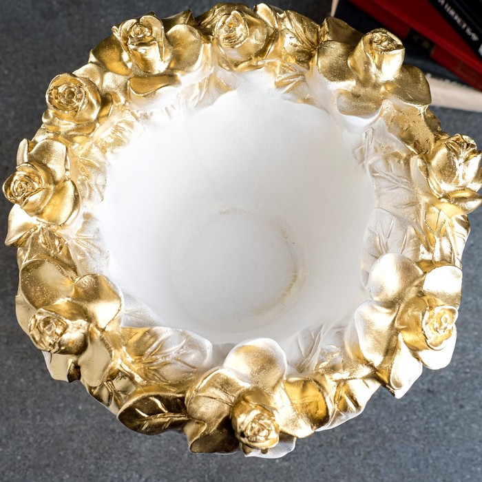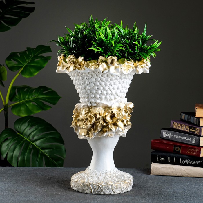 Вазон для цветов «Кубок», 1.8 л, 45×35 см, гипс, белый, золотистый