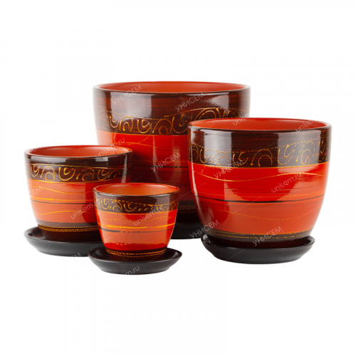 Выбор ёмкости для растения так же важен, как и выбор самого растения, поскольку от горшка зависит жизнь вашего зелёного питомца. Цветочные горшки могут быть выполнены из пластмассы, глины, металла и даже стекла. Глина – наиболее удачный материал для цветочных горшков. Набор из 4-х горшков «Легенда» выполнен из природного материала, керамики. Благодаря природному происхождению материал обладает рядом преимуществ: пористая структура, хорошая устойчивость (из-за большого веса), отличная воздухопроницаемость стенок – в результате меньше вероятность загнивания корней. Объём – 0,4 литра, 1 литр, 2,5 литра, 5 литров.