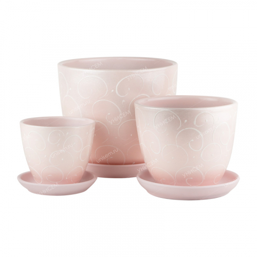 Необходимо добавить домашнему интерьеру нотку эмоций и стиля? Стильный набор из 3-х керамических горшков розового цвета наполнит ваш дом уютом и подчеркнет ваш интерьер. Изготовлены из керамики. Благодаря природному происхождению материал обладает рядом преимуществ: пористая структура, хорошая устойчивость (из-за большого веса), отличная воздухопроницаемость стенок – в результате меньше вероятность загнивания корней. Форма горшков – низкий овал, в комплекте есть поддон.