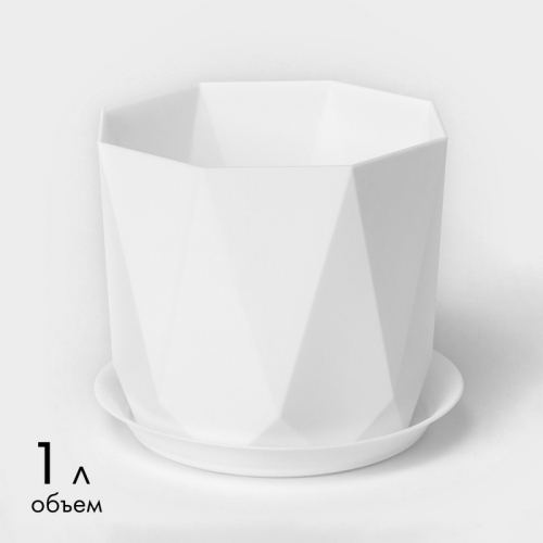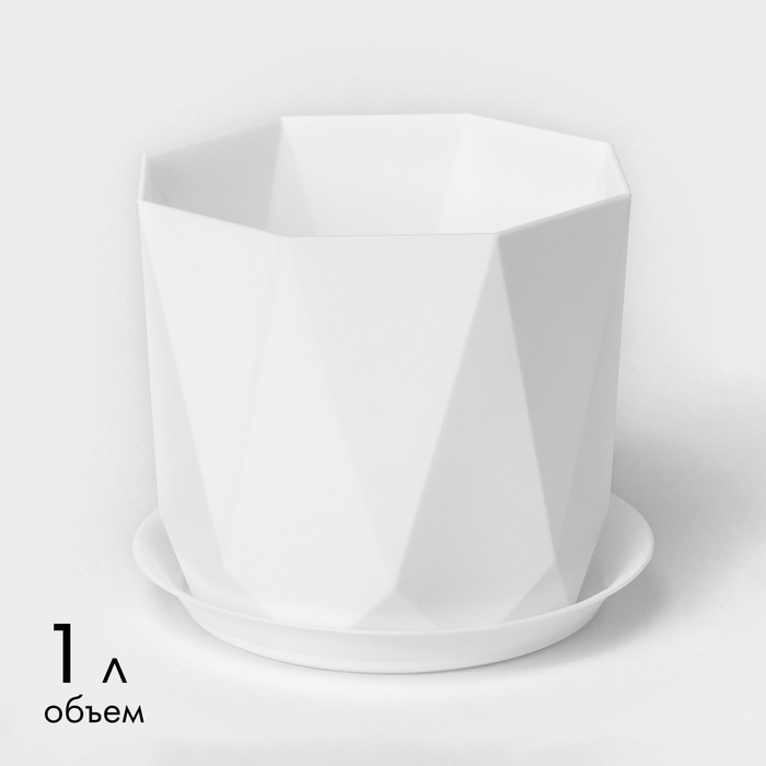 Горшок для цветов с поддоном «Призма», 1 л, пластиковый, белый