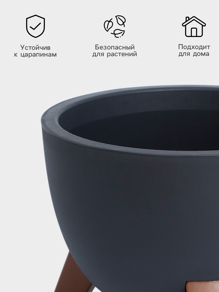 Кашпо для цветов на ножках «Флориан», 12 л (11 л), d=35 см, h=25.5 см, со вставкой, цвет графитовый