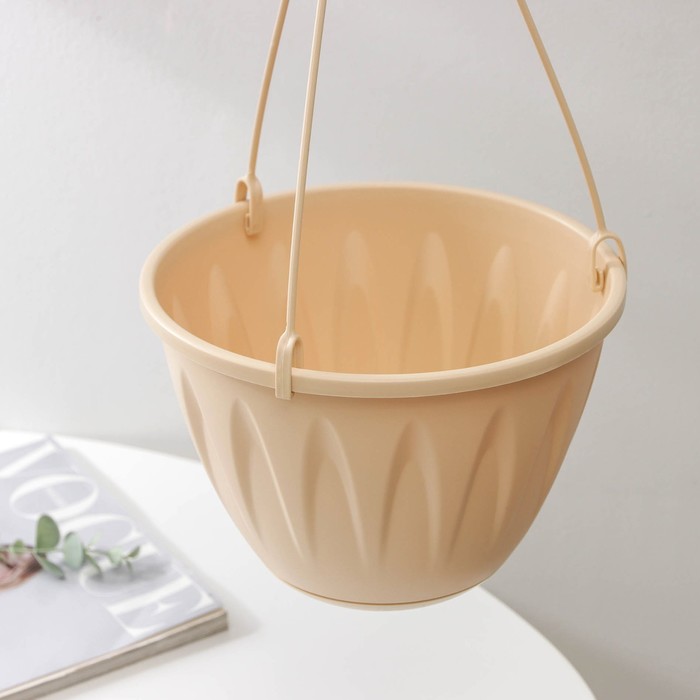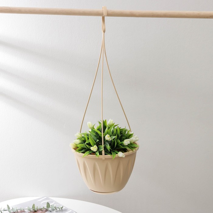 Кашпо для цветов подвесное «Алиция», 3 л, с поддоном, цвет белая глина