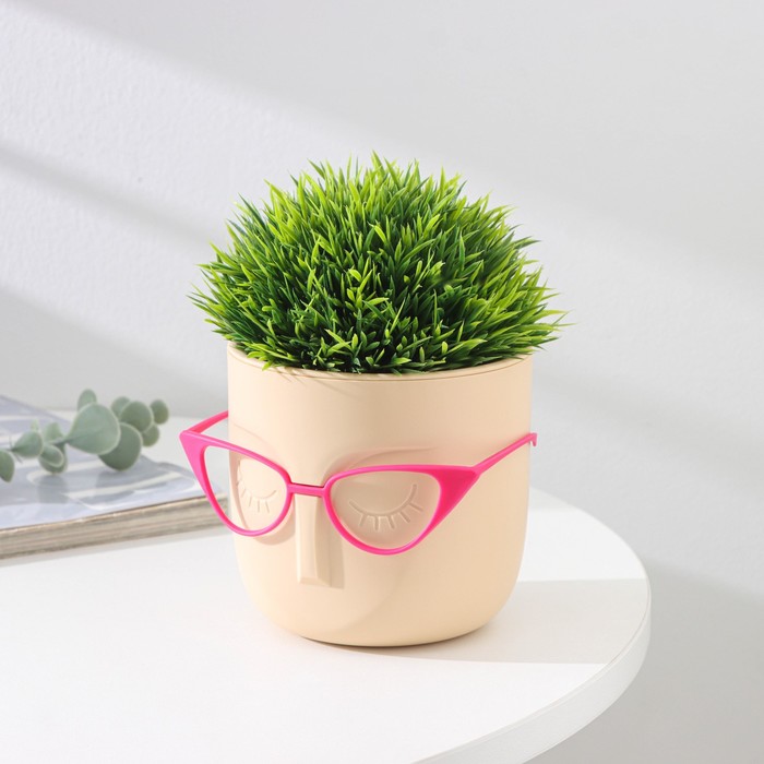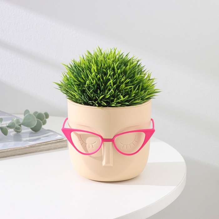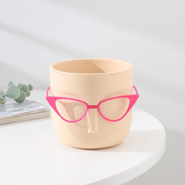 Кашпо для цветов со вставкой «Мари», 650 мл, d=11.5 см, h=10.5 см, бежевое