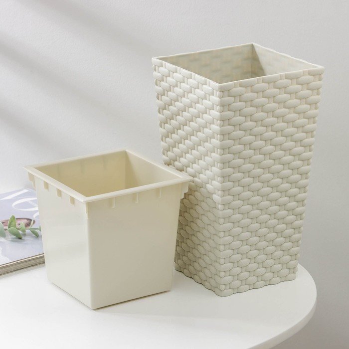 Кашпо для цветов со вставкой IDEA «Ротанг», 4.2 л, вставка 1.5 л, пластик, белое