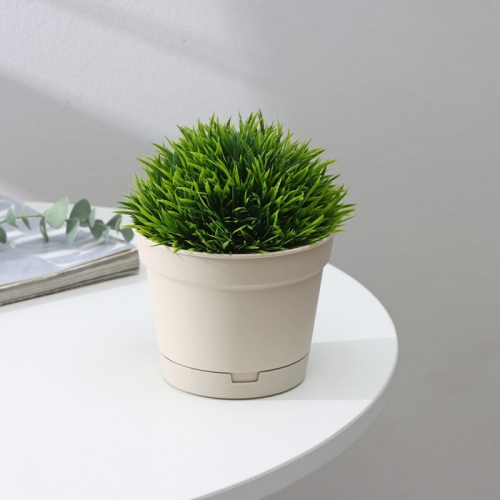 Горшок для цветов с поддоном Mint, 700 мл, d=12 см, h=9.4 см, пластиковый, светло-бежевый