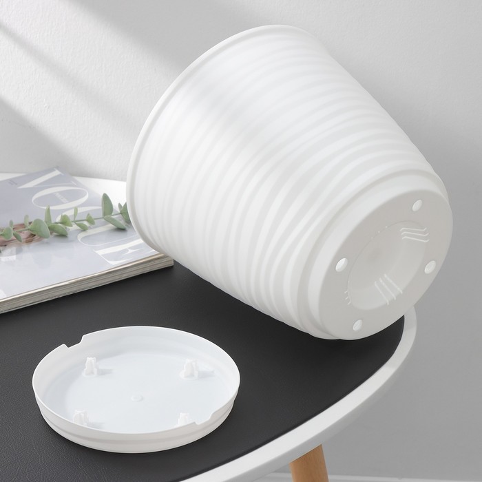 Горшок для цветов с поддоном Saffron, 5.4 л, d=22.4 см, h=20.5 см, пластиковый, белый