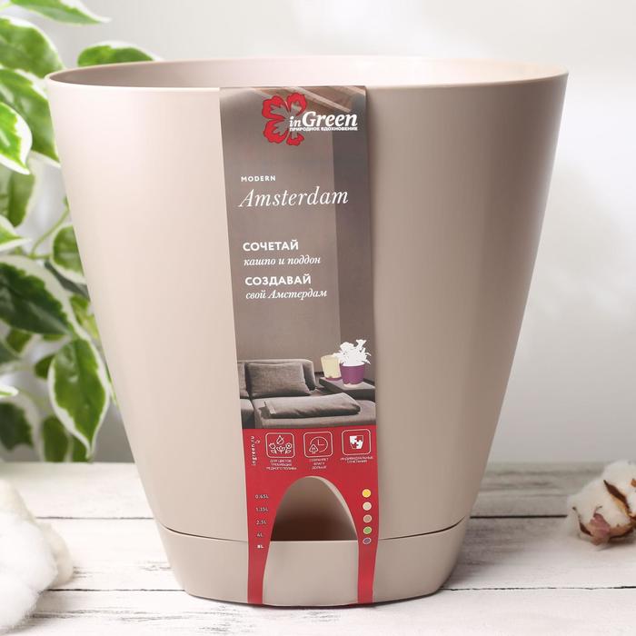 Горшок для цветов с прикорневым поливом Amsterdam, 8 л, цвет молочный шоколад