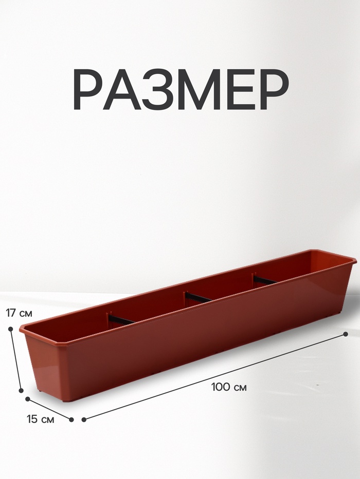 Ящик балконный для цветов, 18 л, 100×15×17 см, пластиковый, цвет терракот