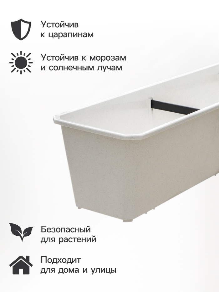 * Удлинённая форма 100 см: ящик полностью заполняет пространство стандартного балконного парапета. Один контейнер заменяет несколько небольших горшков, создавая эффект единой цветочной грядки.