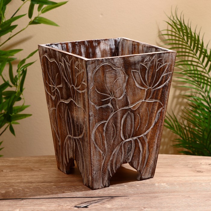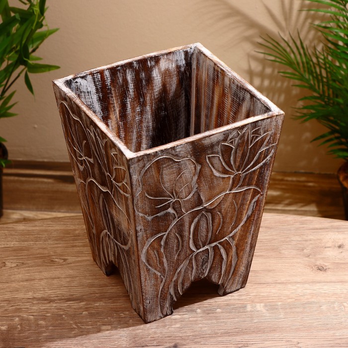 Кашпо «Цветы», 24×24×30 см, дерево албезия, коричневое