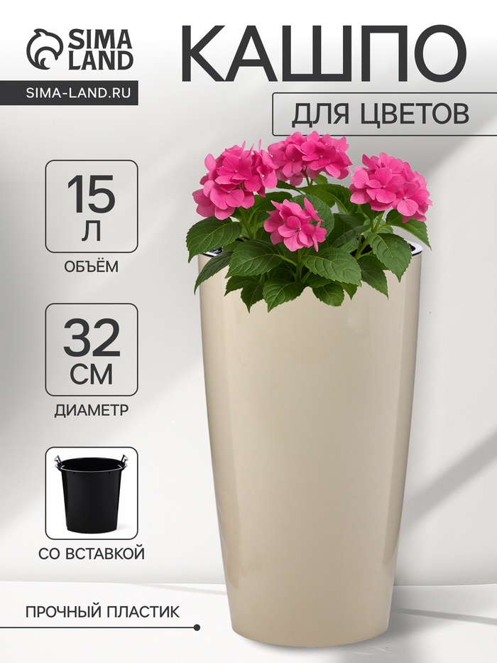 * Гибкость: вставка на 15 литров позволяет адаптировать кашпо под растения разных размеров.