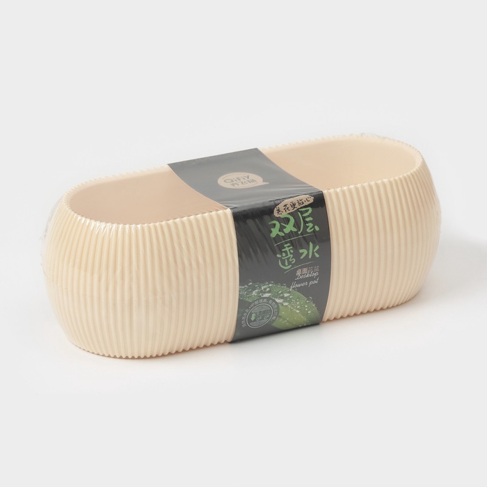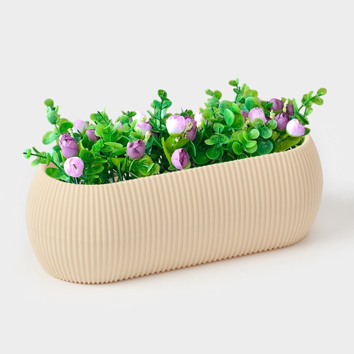 Кашпо для цветов с поддоном Rasfill, 1.3 л, 20.5×8.5×7 см, овальное, бежевое