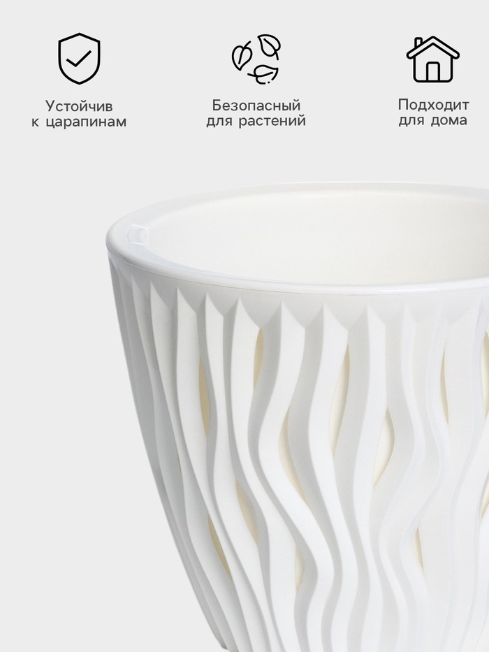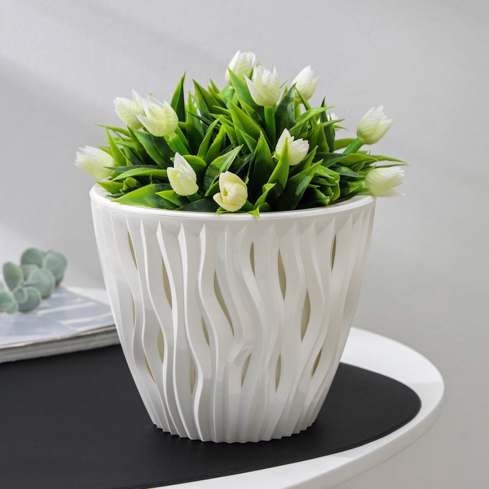 Кашпо для цветов со вставкой «Вдохновение», 2.25 л, d=17.5 см, h=15 см, белое