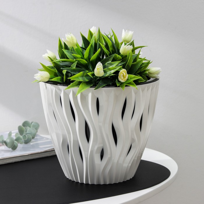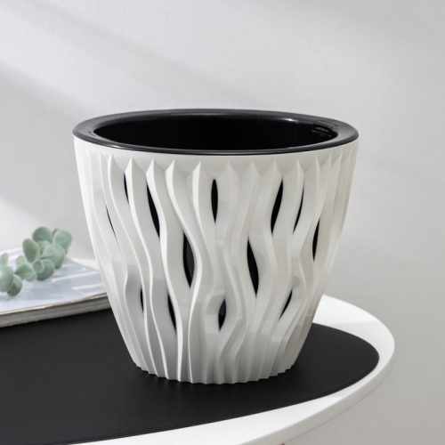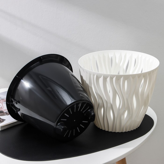 Кашпо для цветов со вставкой «Вдохновение», 4.5 л, d=21.5 см, белое/чёрное