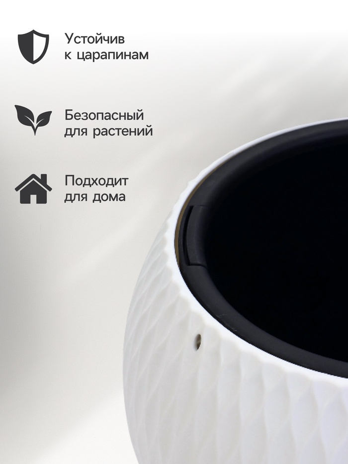 * Современный стиль: белый цвет и форма полусферы делают кашпо стильным дополнением любого интерьера.