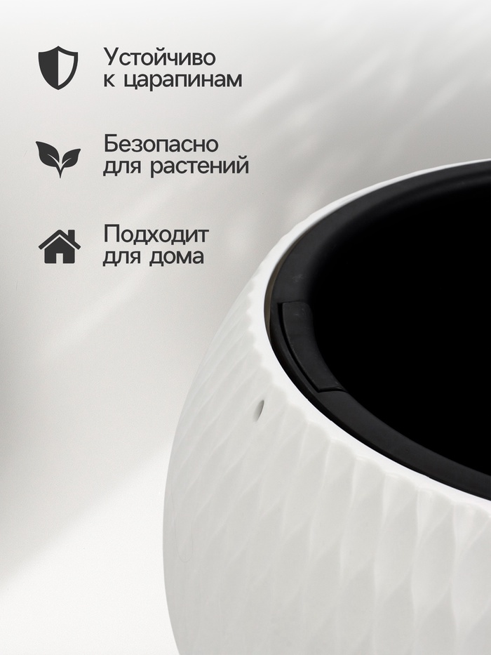 Кашпо «Жемчужина» — это гармония стиля и практичности. Его белоснежная поверхность добавит свежести вашему интерьеру, а продуманная конструкция обеспечит комфорт вашим растениям. Выбирайте безупречное качество и современный дизайн по доступной цене — создайте уют с минимальными усилиями.