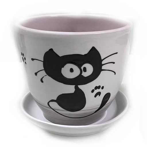 Кашпо Котофей v 2,5 л с подд. керам глазур. ф тюльпан h 18 см d.19 см
