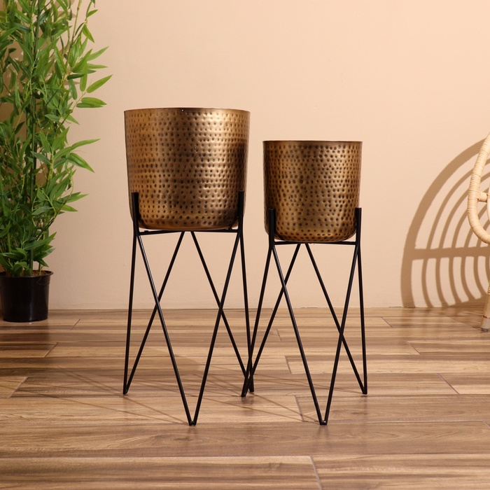 Кашпо на подставке "Бригс" металл (набор 2 шт), диаметр 24 и 21 см