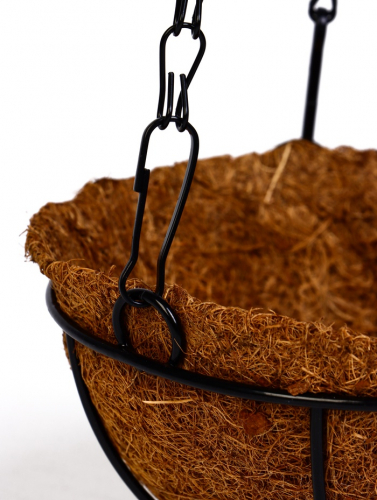 Эргономика и экологичность: полусферическая форма экономит пространство и обеспечивает равномерный рост корней. Натуральное кокосовое волокно со временем разлагается, не нанося вреда окружающей среде. Решение особенно удобно для компактных помещений — кашпо размещают у окон, на лоджиях или в зимних садах. Металлическое покрытие защищено от коррозии при умеренной влажности.
