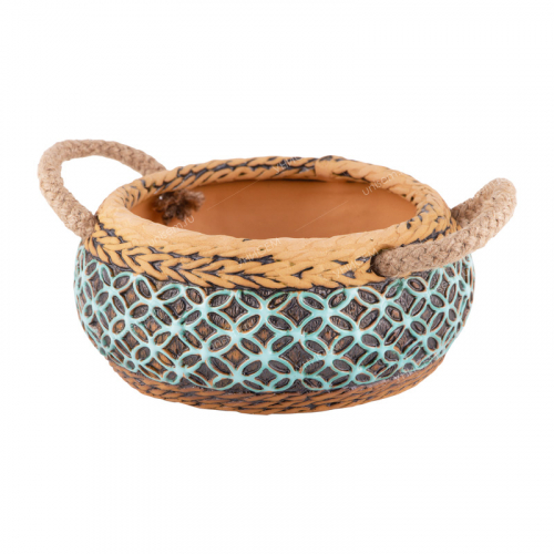 Керамическое кашпо – оригинальное и практичное решение в создании неповторимого интерьера, уюта и атмосферы дома или офиса, оно поможет Вам подчеркнуть натуральность, уникальность и своеобразие. Изделие выполнено в достаточно оригинальной форме – в форме корзинки. Кашпо без поддона и не имеет дренажного отверстия. Не рекомендуется пересаживать растение в кашпо без дренажного отверстия – лучше вставить в него пластиковый горшочек, чтобы было удобно поливать (это защитит от перелива растений и загнивания корней). Объём – 2 литра, диаметр – 21 см, высота – 11 см.