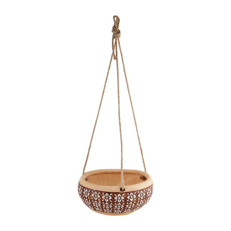 Любой, даже самый современный и продуманный интерьер будет незавершенным без растений. Они не только очищают воздух и насыщают его кислородом, но и заметно украшают окружающее пространство. Но ещё стоит уделить внимание горшкам и кашпо, ведь каждому растению нужен свой дом. Данное кашпо является подвесным и изготовлено из керамики в оригинальной форме. Керамика – дышащий и экологически чистый материал, который является идеальной средой для здорового роста растений. Благодаря природному происхождению, глина лучше регулирует температуру почвы, что благоприятно влияет на развитие корневой системы любого растения. С помощью подвеса кашпо можно закрепить на желаемой высоте. Объём – 1,4 литра, диаметр – 8 см, высота – 10 см.