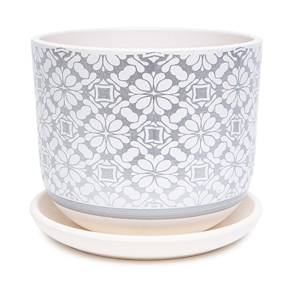 Горшок Бук Гипюр 0,8л d12 белый с поддоном (уп.16)