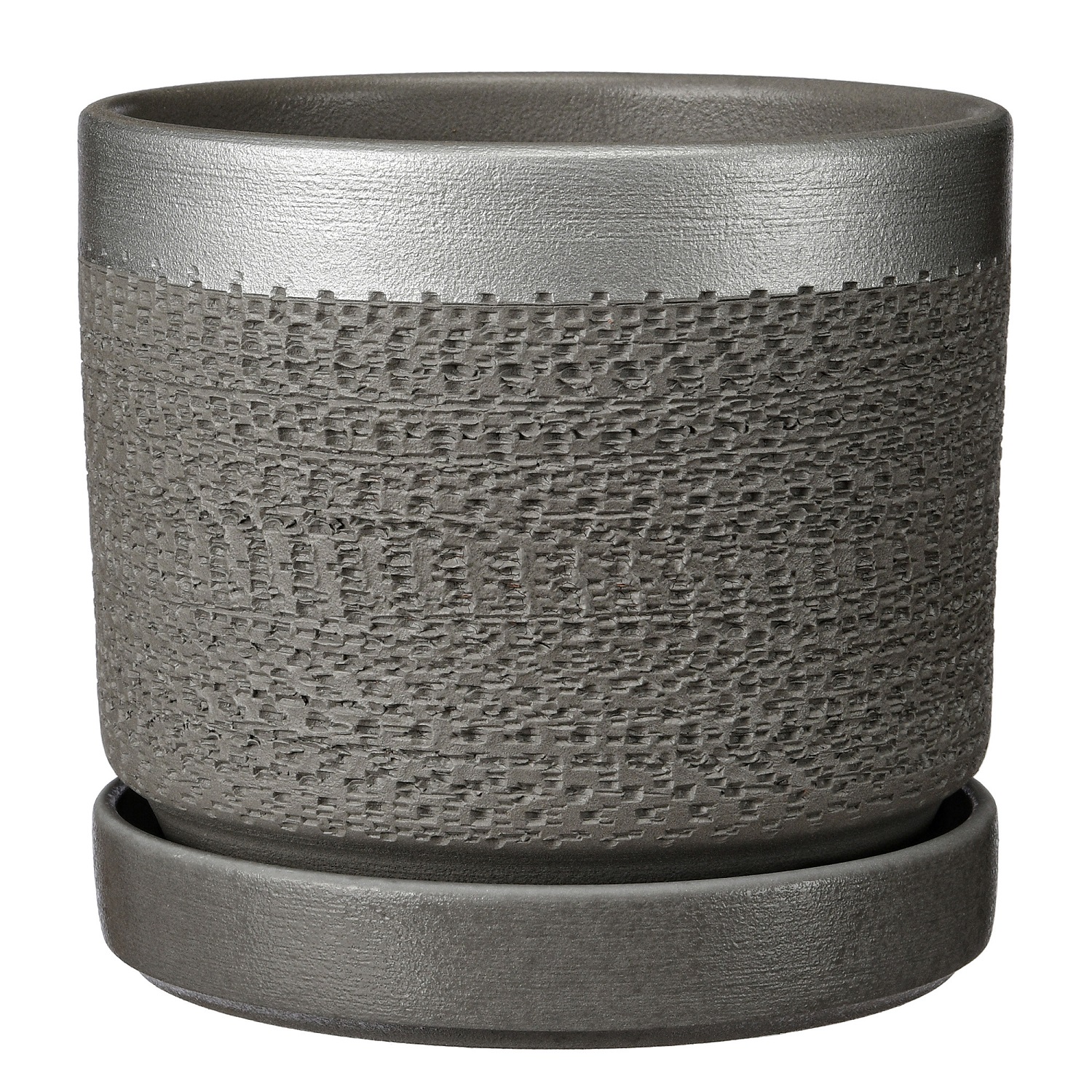 Горшок Цилиндр Брюссель 1,5л d15 серый серебро с поддоном (уп.10)