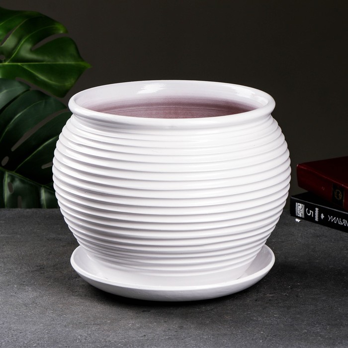 Горшок для цветов «Сатурн», 6.5 л, d=28 см, h=24 см, керамический, с поддоном, белый