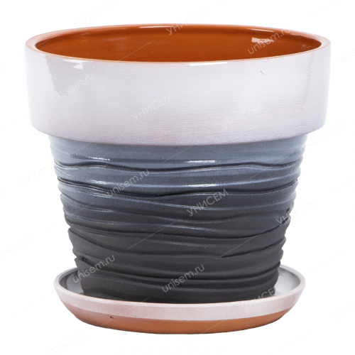 Горшок Фактурный 0,9л с поддоном, 6 цв (уп.12)
