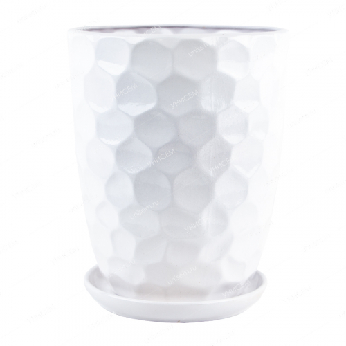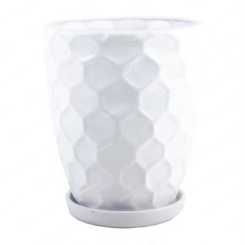 Керамические горшки– самые распространенные в мире ёмкости для высадки растений. Глиняные кашпо нравятся почти всем видам декоративной флоры. Они хорошо смотрятся в оранжереях, на улице, в кафе, квартирах, офисах, независимо от дизайна. Горшок «Соты» объёмом 2,2 литра позволяет выращивать в нём средние комнатные растения. Обладает приятным цветом и стилизован под соты. Растение в таком горшке чувствует себя комфортно круглый год. Керамика – экологичный пористый материал, он «дышит», пропускает кислород, тем самым помогает излишкам влаги испариться. Такие горшки можно использовать в помещении или под открытым небом. Они неплохо выдерживают эксплуатацию при высоких и низких температурах, не выцветают на солнце, сливаются с ландшафтом.Неоспоримые преимущества керамических горшков:• керамика является пористым материалом, что позволяет воздуху свободно циркулировать вокруг корней растений, предотвращая их гниение;• материал обладает способностью накапливать тепло днём и отдавать его ночью, что помогает поддерживать стабильную температуру почвы и защищает корни от перегрева или переохлаждения;• это натуральный материал, который не выделяет вредных веществ в почву и воздух, делая его безопасным для здоровья человека и окружающей среды.Характеристики:• объём – 2,2 л;• цвет – белый;• в комплект входит поддон.