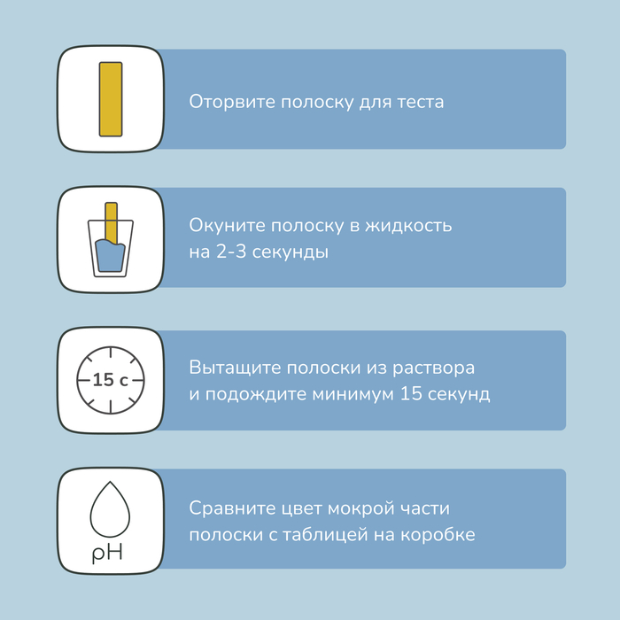 4. Сравните цвет мокрой части полоски с таблицей внутри, а затем с таблицей на внешней стороне и определите кислотность/щелочность.