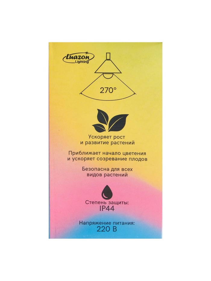 * Угол рассеивания: 270° — равномерно освещает растения, обеспечивая их правильное развитие.
