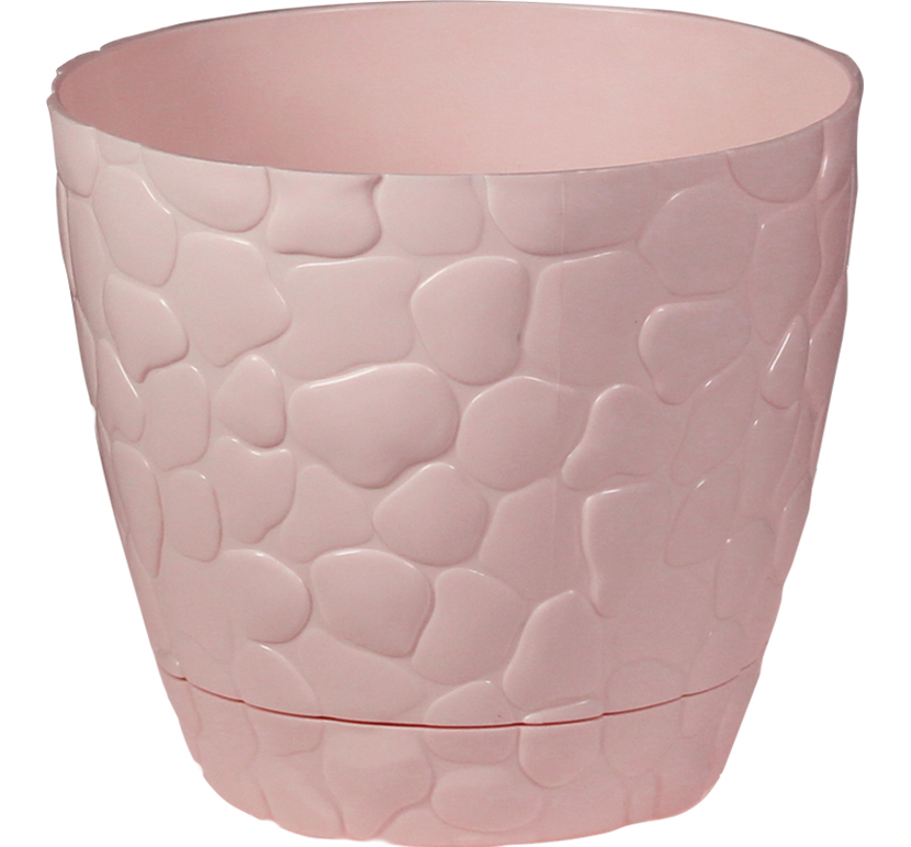 Кашпо «Камни» завоюет сердце любого цветовода! Его стенки украшены объёмной текстурой, имитирующей морскую гальку, что делает это кашпо индивидуальным. Кашпо подходит для выращивания как многолетних, так и однолетних растений и станет последним штрихом в оформлении квартиры, офиса или сада. Изделие выполнено в розовом цвете, изготовлено из безопасного и прочного материала – пластика. Данный материал имеет долгий срок службы и легко очищается. Особенность этого горшка в конструкции – пристегивающийся поддон. Он надёжно крепится к горшку, с помощью специальных сильных креплений. Это предотвращает протечку жидкости. А на дне горшка есть специальные дренажные отверстия, обеспечивающие отвод лишней воды и аэрацию воздуха. Объём – 1,4 литра, диаметр – 15 см.