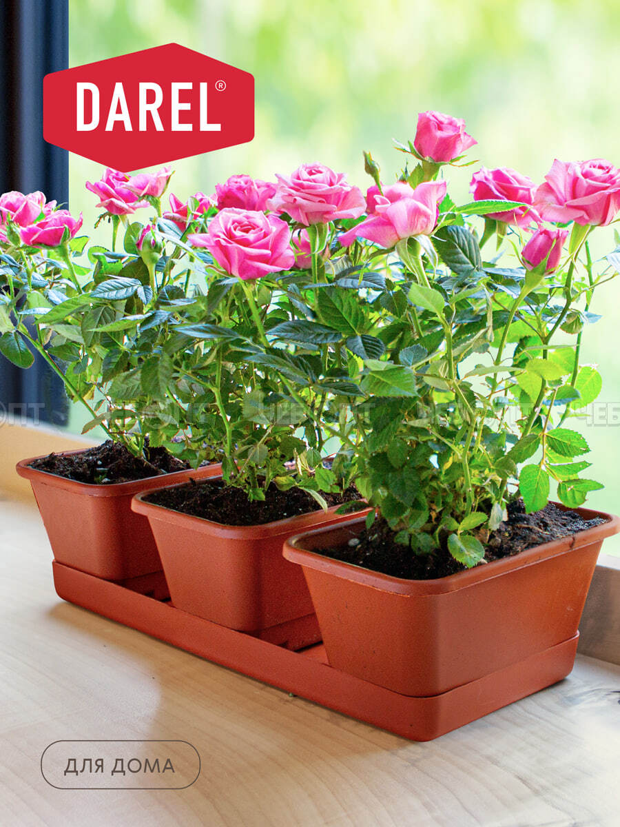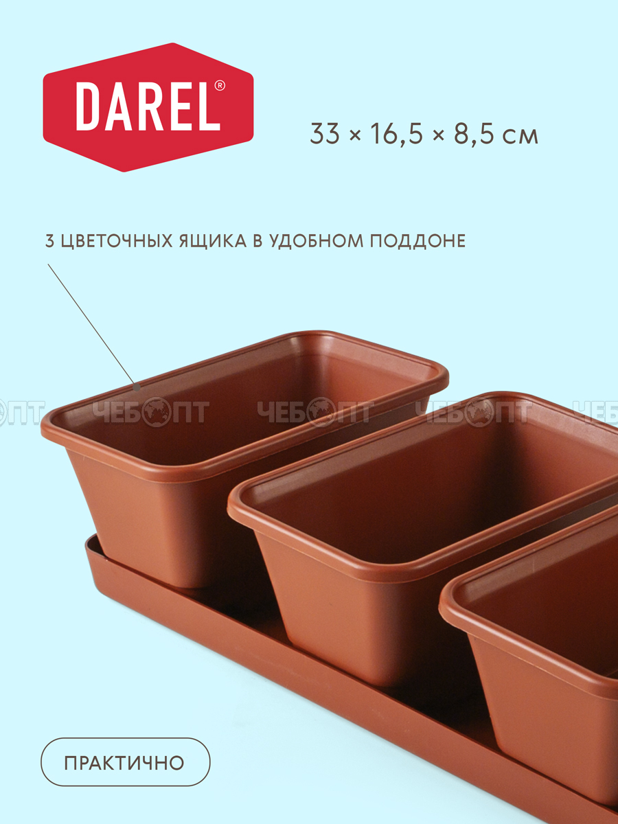 Мини - сад на 3 горшка 330*165*85 мм ГОРШКИ ПЛАСТИКОВЫЕ и ПОДДОН, арт. 50440 [30] ДАРЕЛ