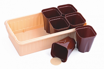 Набор для выращивания рассады в домашних условиях. Материал - полипропилен. В состав набора входят: ящик  - 1 шт., стаканчики со съемным 250 мл. Ящик можно использовать как отдельно, так и в комплекте со стаканчиками. Изделия из пластмассы легко моются и подходят для многократного использования. ТОЛЬКО ЯРКИЕ И НАСЫЩЕННЫЕ ЦВЕТА