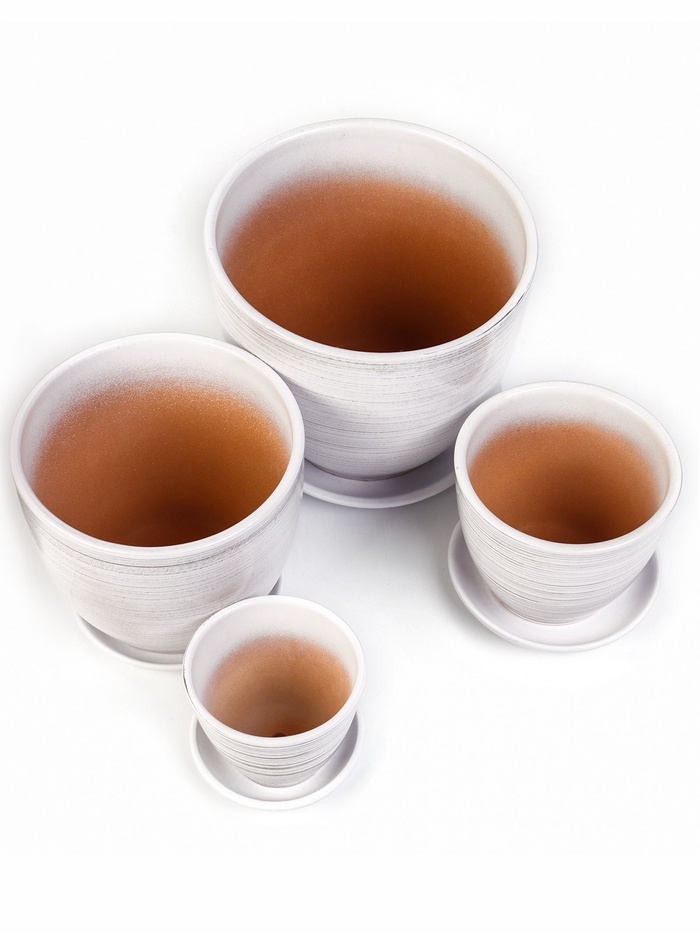 Набор горшков для цветов «День», 4 шт., с поддоном, 0.4 / 1 / 2.5 / 5 л, керамика, белые