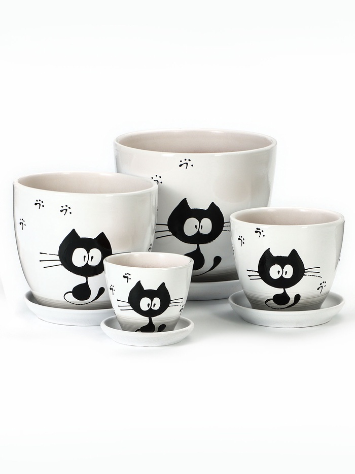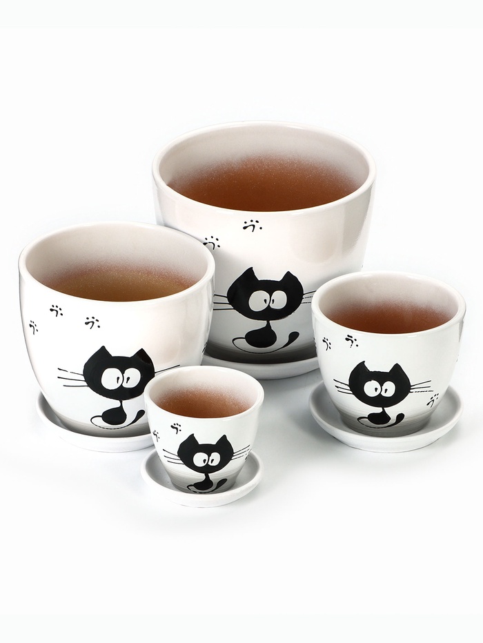Набор горшков для цветов «Котофей», белый, керамика, 4 шт.: 5 л, 2.5 л, 1 л, 400 мл