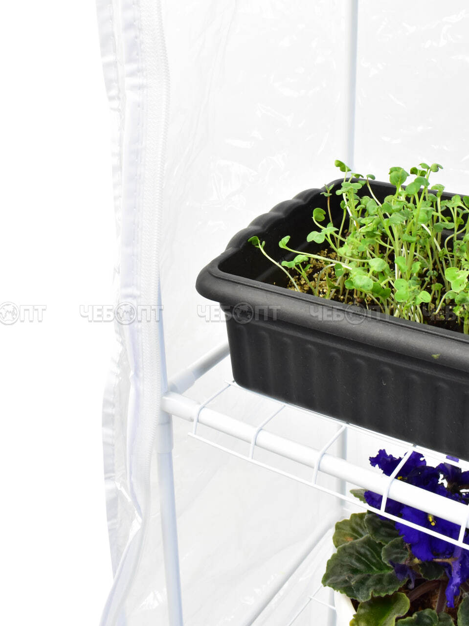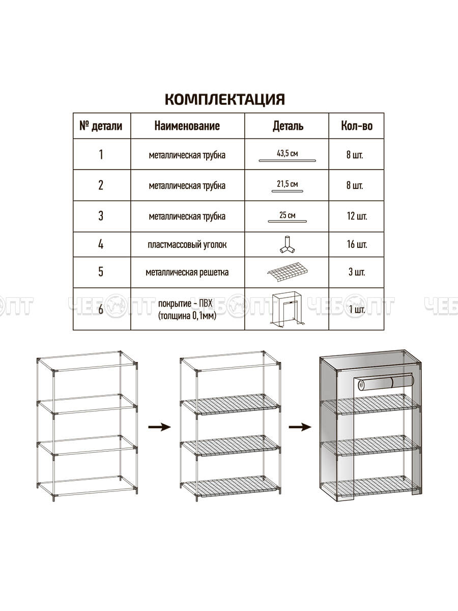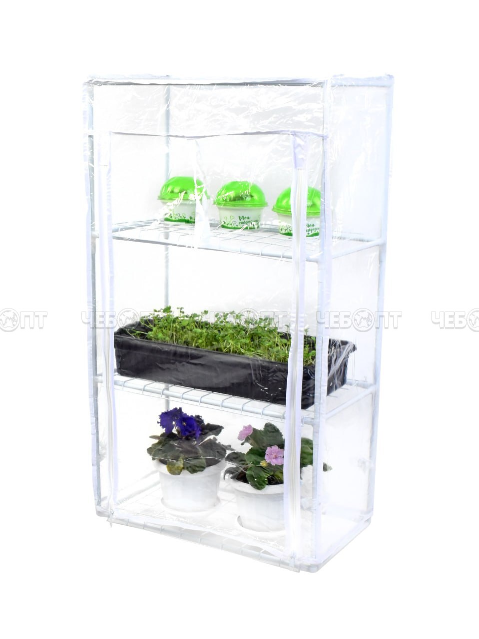 Парник для рассады (растений) на подоконник 3 полки, 460*240*800 мм, БЕЛЫЙ металлический каркас + ПВХ пленка мкр арт. WM008-БЕЛ $ [1] Богатый урожай