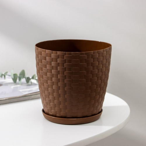 Горшок для цветов с поддоном «Ротанг», 1.2 л, d=13 см, h=12 см, пластиковый, коричневый