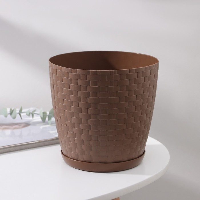 Горшок для цветов с поддоном «Ротанг», 3 л, d=17 см, h=17 см, коричневый