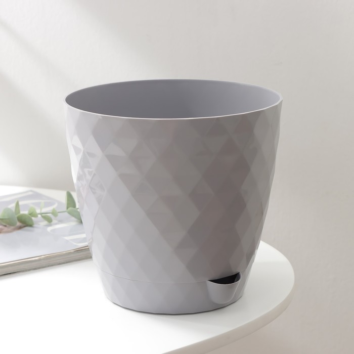 Горшок для цветов, с прикорневым поливом «Румба», 3 л, d=18 см, h=17 см, пластик, с поддоном, серый