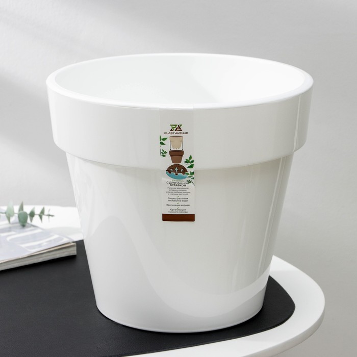 Кашпо для цветов со вставкой Plast-Avenue «Порто», 9 л, пластик, белое